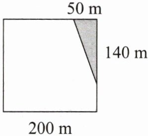 3. 如图,在一块边长为 200 m 的正方形土地的一角挖一个三角形鱼塘,其余土地用来种高粱。如果每平方米土地能收 1.5 kg 高粱,那么这块土地一共可以收多少千克高粱?