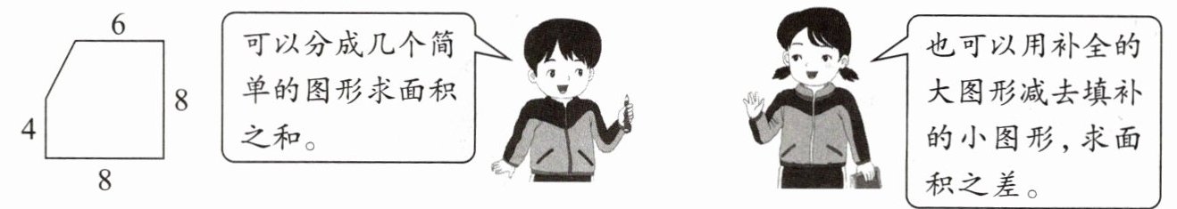 )形。列式:方法一:$(6+8)× (8-4)÷ 2+8× 4=60(\mathrm{c}{\mathrm{m}}^{2})$