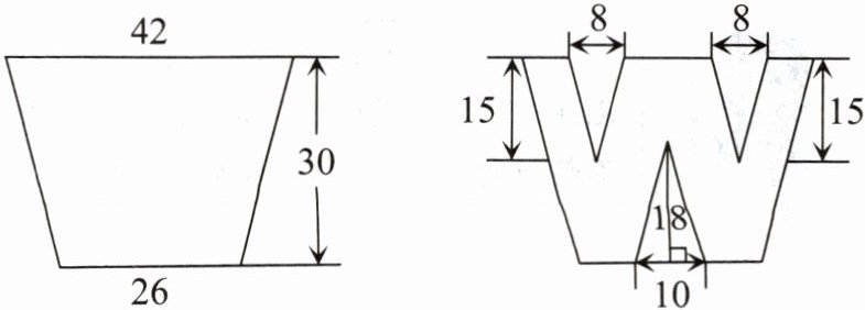 $(42+26)× 30÷ 2-8× 15÷ 2× 2-10× 18÷ 2=810(\mathrm{c}{\mathrm{m}}^{2})$