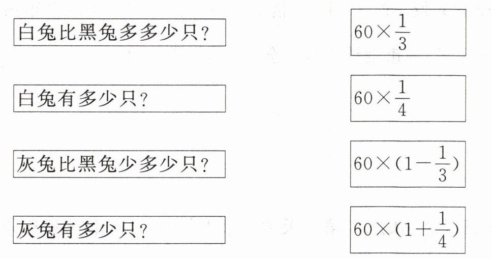 灰兔比黑兔少多少只? -- $60×\frac{1}{3}$
