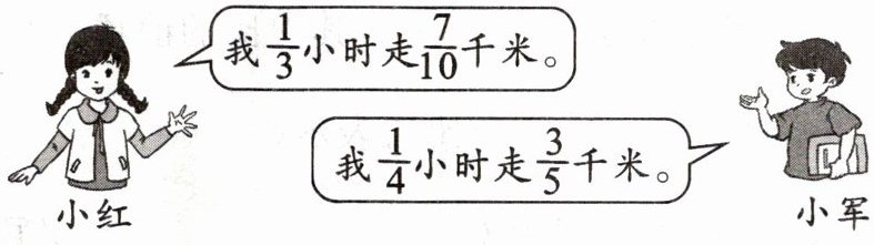 小红:$\frac{7}{10}÷\frac{1}{3}=2.1$(千米/时)