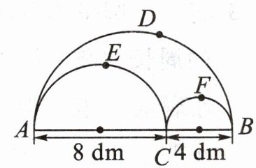 甲:$(8+4)\pi÷2=6\pi$(dm)