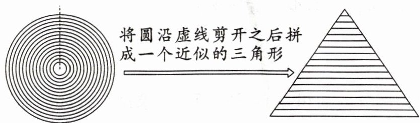 5. 小明根据一个草绳编织而成的杯垫,想到了另一种有意思的圆的面积的推导方法。请你试着想一想、填一填。