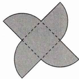 4. 如图所示图形的中间部分是一个边长为 $ 3 \mathrm{cm} $ 的正方形,与正方形每条边相连的都是圆心角为 $ 90^{\circ} $ 的扇形。整个图形的面积是多少?
