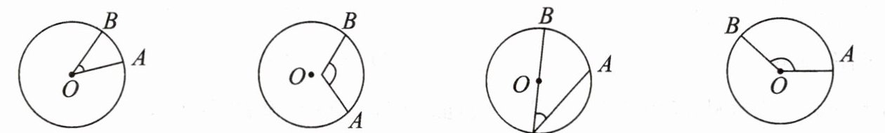1. 下面图形中哪些角是圆心角?是圆心角的在下面的括号里画“√”。