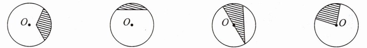 2. 下面图中的阴影部分哪些图形是扇形?是扇形的在下面的括号里画“√”。