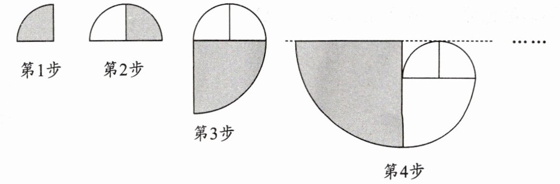 5. 斐波那契螺旋线,也称“黄金螺旋”,它可以用大小不同的圆心角是 $ 90^{\circ} $ 的扇形的弧线画出来。如果第一步中扇形的半径是 $ 1 \mathrm{cm} $,按下图所示的规律,第 $ 5 $ 步画出的新扇形的面积是多少平方厘米?