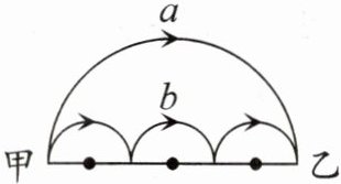 6. 如图所示,从甲地到乙地,走 a 路线与走 b 路线的路程相比,(