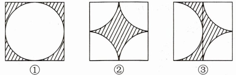 4. 下图中三个正方形的边长相等,各图中阴影部分周长的长短关系是(