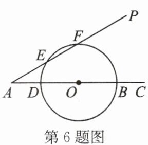 6. 如图,$\angle PAC = 30^{\circ}$,在射线 $AC$ 上顺次截取 $AD = 3\ cm$,$DB = 10\ cm$,以 $DB$ 为直径作 $\odot O$,交射线 $AP$ 于 $E$,$F$ 两点,则线段 $EF$ 的长是______$cm$。