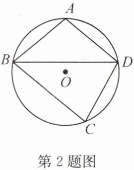 2. 如图,四边形 $ABCD$ 内接于 $\odot O$,$AB = CD$,$A$ 为 $\overset{\frown}{BD}$ 的中点,$\angle BDC = 60^{\circ}$,则 $\angle ADB$ 的度数为( )