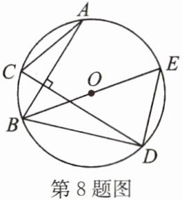 8. 如图,$AB$,$CD$ 是 $\odot O$ 的弦,$AB\perp CD$,$BE$ 是 $\odot O$ 的直径。若 $AC = 3$,则 $DE = $ 。