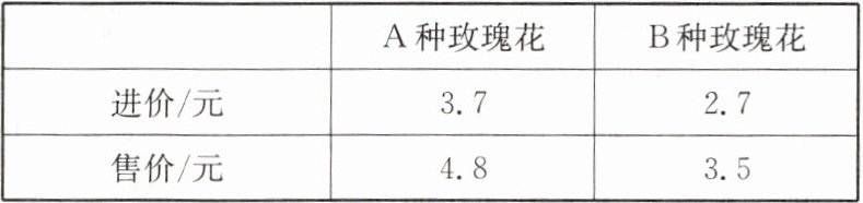 (2)将 A,B 两种玫瑰花(其售价和进价如下表)共 10 支包成一束整体销售,若此花束的成本不超过 32.5 元,如何搭配 A,B 两种玫瑰花的数量,才能使此花束的利润最大?
