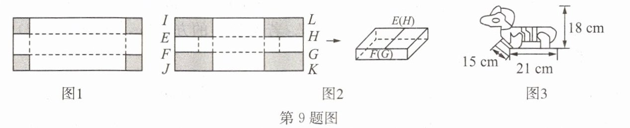 如图 2,把另一块长方形硬纸板的四角剪去四个相同的小长方形,然后折成一个有盖的长方体收纳盒,EF 和 HG 两边恰好重合且无重叠部分.