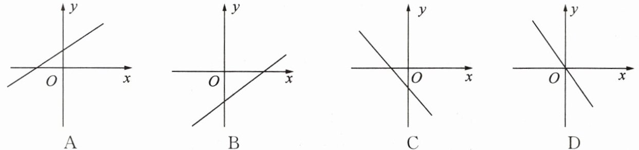 12. 若关于$x的一元二次方程x^2 - 2x + kb + 1 = 0$有两个不相等的实数根,则一次函数$y = kx + b$的大致图象可能是( )