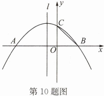 10. 如图,在平面直角坐标系中,抛物线 $ y = ax^{2}+bx + 2(a,b $ 为常数,且 $ a\neq 0) $ 与 $ x $ 轴交于点 $ A(-4,0) $ 和点 $ B $,与 $ y $ 轴交于点 $ C $,且 $ OC = OB $。