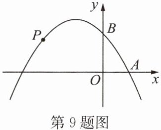 9. 如图,在平面直角坐标系中,抛物线 $ y = -\frac{1}{4}x^{2}+bx + c $($ b $,$ c $ 是常数)经过点 $ A(2,0) $、点 $ B(0,3) $。点 $ P $ 在抛物线上,其横坐标为 $ m $。