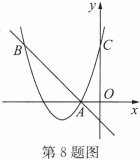 8. 如图,二次函数 $ y = (x + 2)^{2}+m $ 的图象与 $ y $ 轴交于点 $ C $,点 $ B $ 在抛物线上,且与点 $ C $ 关于抛物线的对称轴对称。已知一次函数 $ y = kx + b $ 的图象经过该二次函数图象上的点 $ A(-1,0) $ 及点 $ B $。