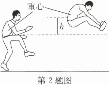 2. 如图,小敏在今年的校运动会跳远比赛中跳出了满意的成绩,函数$h = 3.5t - 4.9t^{2}可以描述他跳跃时重心高度h$(单位:$m$)随时间$t$(单位:$s$)的变化关系,由此可知他起跳后重心到达最高时所用的时间$t$约为( )
