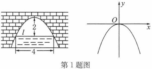 1. 如图,这是一个横断面为抛物线形的拱桥,当水面在$l$时,拱顶(拱桥洞的最高点)离水面$2m$,水面宽$4m$。如图,建立平面直角坐标系,则抛物线所表示的函数的解析式是( )