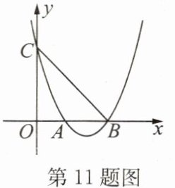 11. 如图,抛物线 $ y = x^2 + bx + c $ 与 $ x $ 轴交于 $ A $,$ B $ 两点,与 $ y $ 轴交于点 $ c $。若 $ \angle OBC = 45^{\circ} $ 则( )