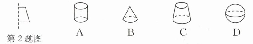 2. 如图所示的直角梯形绕直线$l$旋转一周,得到的立体图形是( )