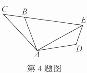 4. 如图,将$\triangle ABC绕点A顺时针旋转100^{\circ}得到\triangle ADE$,$C$,$B$,$E$三点共线,则$\angle BED$的度数为______.