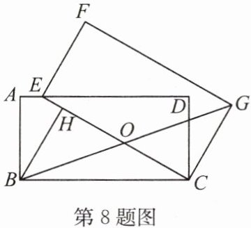 8. 如图,将矩形$ABCD绕着点C按顺时针方向旋转得到矩形FECG$,点$B与点E$对应,点$E恰好落在AD$边上,$BH\perp CE交于点H$.