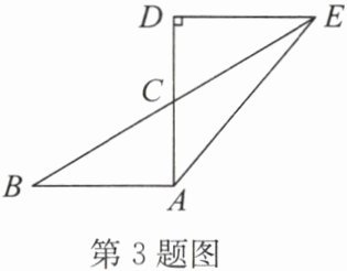 3. 如图,已知 $ AB = 3 $,$ AC = 2 $,$ \angle D = 90^{\circ} $,$ \triangle DEC $ 与 $ \triangle ABC $ 关于点 $ C $ 成中心对称,则 $ AE $ 的长是____.