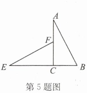 5. 如图,在平面内将 $ Rt \triangle ABC $ 绕着直角顶点 $ C $ 逆时针旋转 $ 90° $ 得到 $ Rt \triangle EFC $。若 $ AB = \sqrt{5} $,$ BC = 1 $,则线段 $ BE $ 的长为______。