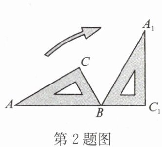 2. 如图,将三角尺 $ ABC $(其中 $ \angle ABC = 60° $,$ \angle C = 90° $)绕 $ B $ 点按顺时针方向转动一个角度到 $ \triangle A_1BC_1 $ 的位置,使得点 $ A $,$ B $,$ C_1 $ 在同一条直线上,那么这个角度等于( )