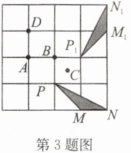 3. 在如图所示的 $ 4 × 4 $ 的正方形网格中,$ \triangle MNP $ 绕某点旋转一定的角度,得到 $ \triangle M_1N_1P_1 $,则其旋转中心可能是( )
