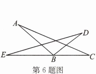 6. 如图,$\triangle ABC$绕点B向逆时针方向旋转到$\triangle EBD$的位置,若$\angle A = 20^{\circ}$,$\angle C = 15^{\circ}$,且E、B、C在同一直线上,则旋转角度是( )