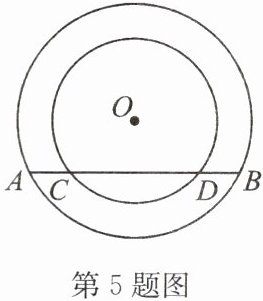 5. 如图,在以点 $O$ 为圆心的两个圆中,大圆的弦 $AB$ 交小圆于点 $C$,$D$,求证:$AC = BD$.