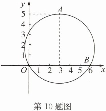 10. 如图,在平面直角坐标系中,一个圆经过 $O(0,0)$,$A(3,5)$,$B(6,0)$ 三点,求该圆圆心的坐标。