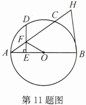 11. 如图,$AB是\odot O$的直径,$D为\overset{\frown}{AC}$的中点,$DE \perp AB于点E$,交$AC于点F$.