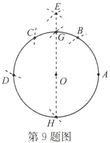 ③以点$A$为圆心,$OE长为半径作弧交\odot O于G$,$H$两点,则点$A$,$G$,$D$,$H将\odot O$的圆周四等分.