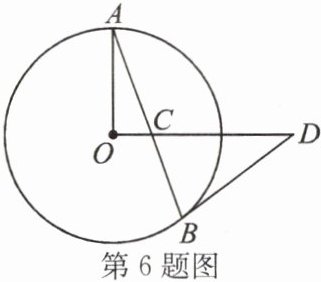 6. 如图,$AB为\odot O$的弦,$OC \perp OA$,$AB交OC于C$,过$B的直线交OC的延长线于D$,当$CD = BD$时,直线$BD与\odot O$有怎样的位置关系?并证明.