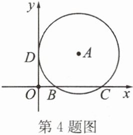 4. 如图,在平面直角坐标系中,点$A$在第一象限,$\odot A与x轴交于B(2,0)$,$C(8,0)$两点,与$y轴相切于点D$,则点$A$的坐标是______。