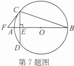 7. 如图,在$\odot O$中,$AB$是直径,$CD$是弦,且$AB \perp CD$,垂足为$E$,$AB = 20$,$CD = 12$,在$BA的延长线上取一点F$,连接$CF$,使$\angle FCD = 2\angle B$.