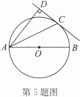 5. 如图,$AB为\odot O$的直径,$C为\odot O$上的一点. 若$\angle BAC = \angle CAD$,且$CD \perp AD于点D$,试探究$CD与\odot O$的位置关系.