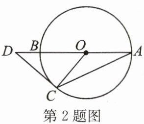 2. 如图,$AB是\odot O$的直径,点$D在AB$的延长线上,$DC切\odot O于点C$,若$\angle A = 25^{\circ}$,则$\angle D$等于( )