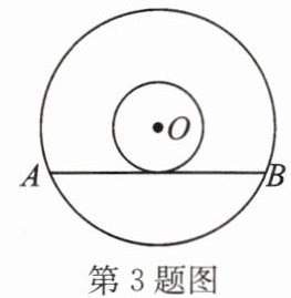 3. 如图,在以$O$为圆心的两个同心圆中,大圆的弦$AB$为小圆的切线,若$AB = 4$,则圆环的面积为______。