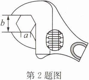 2. 如图,在拧开一个边长为 $ a $ 的正六边形螺帽时,已知扳手张开的开口 $ b = 10\sqrt{3} $ mm,则这个正六边形的面积为( )