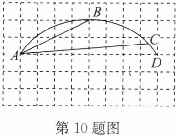 10. 如图所示的网格中,每个小正方形的边长均为 $1$,点 $A$,$B$,$D$ 均在小正方形的顶点上,且点 $B$,$C$ 在 $\overset{\frown}{AD}$ 上,$\angle BAC = 22.5^{\circ}$.