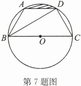 7. 如图,点 $A$,$B$,$C$,$D$ 均在 $\odot O$ 上,$BC$ 为直径,$AD// BC$,$BD$ 平分 $\angle ABC$,四边形 $ABCD$ 的周长为 $15$.