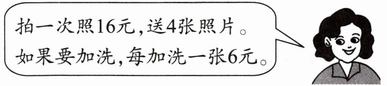 4.9 - 4 = 5(张) 16 + 5 × 6 = 46(元)