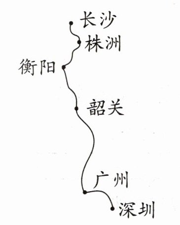 (3)火车从长沙出发,已经行驶了 500 千米,在图中用“▲”标出此时火车的大致位置。(5 分)