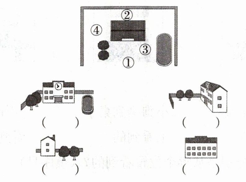 1. 下面四幅画面,分别是站在①②③④号哪个位置看到的?(填序号)
