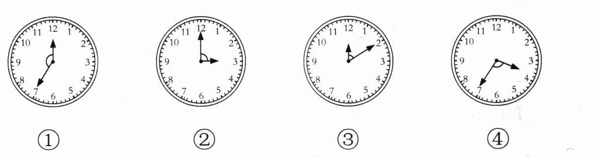 4. 将下面钟表的指针所形成的角按从大到小的顺序排一排。(排序号)